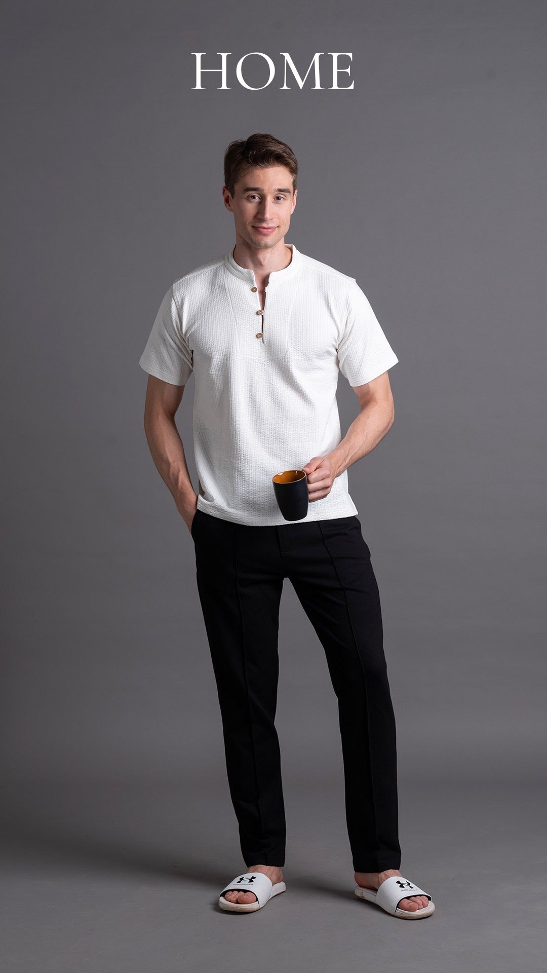 CONSTRUCTION: Sharp pin-tuck crease, elastic waist with belt loops - 2 belt loops at the back for belt support